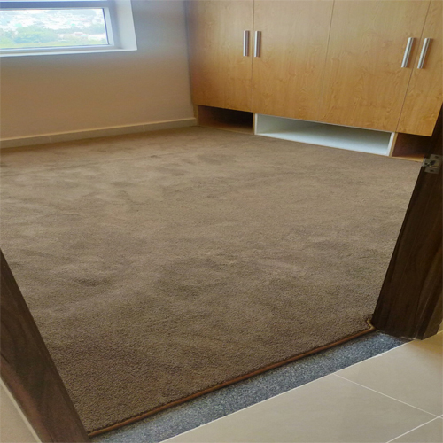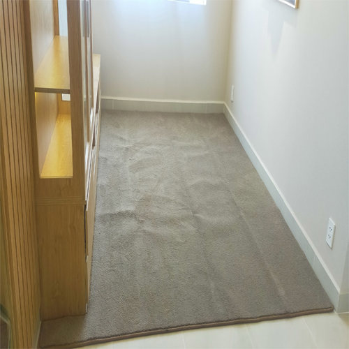 Khách hàng tại Quận 8 chọn loại thảm cuộn dày SPLENDID nhưng linh hoạt hơn khi chọn không sử dụng keo dán thảm mà thay vào đó là may viền cả tấm và ốp vào kích thước đã được đo sẵn trước đó.