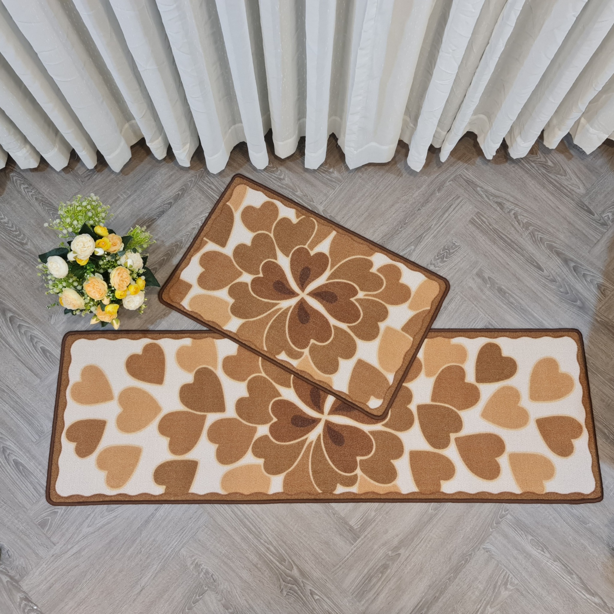 Combo thảm bếp lớn gồm 02 tấm thảm, thảm lớn size 50x157cm và thảm nhỏ size 50x80cm.