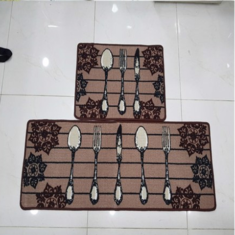 Thảm bếp TQ có nhiều mẫu mã đa dạng, mô phỏng các chủ đề gần gũi như bộ dao nĩa, cafe, trái cây góp phần tạo nên không gian nhà bếp xinh xắn.