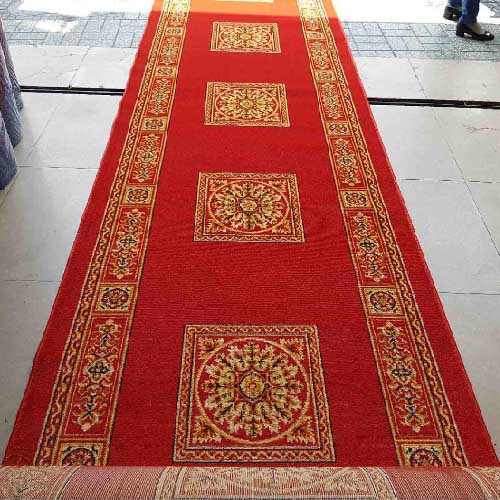 Dòng thảm lối đi có màu sắc mạnh mẽ như kem, vàng, đỏ đô, đỏ tươi để tạo ấn tượng mạnh mẽ, sự thu hút cho khách hàng đến với khu nhà hàng, khách sạn sang trọng.