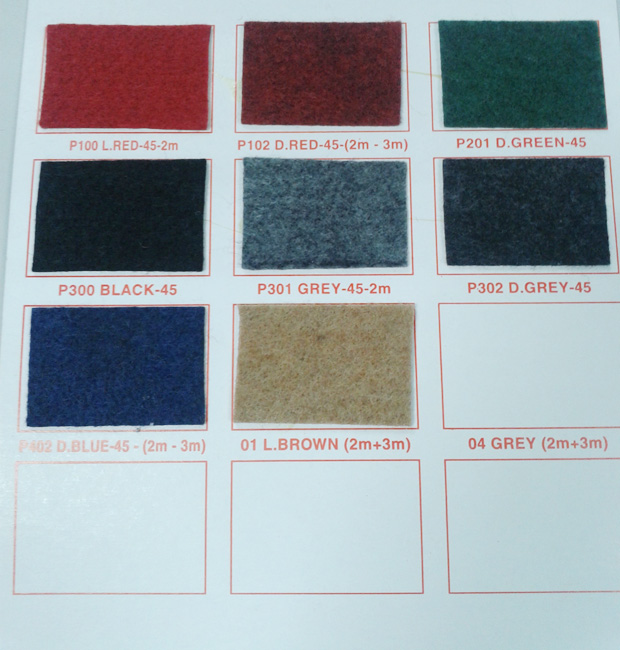 Về màu sắc, thảm PLAIN 450 có ít màu hơn, tập trung vào các màu phổ biến như đỏ, xám, xanh lá, xanh dương.
