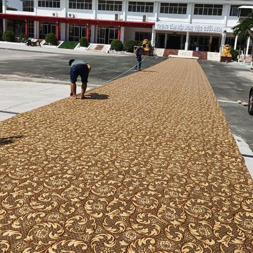 Giá bán được tính theo đơn vị m2 và bán hết chiều khổ thảm.