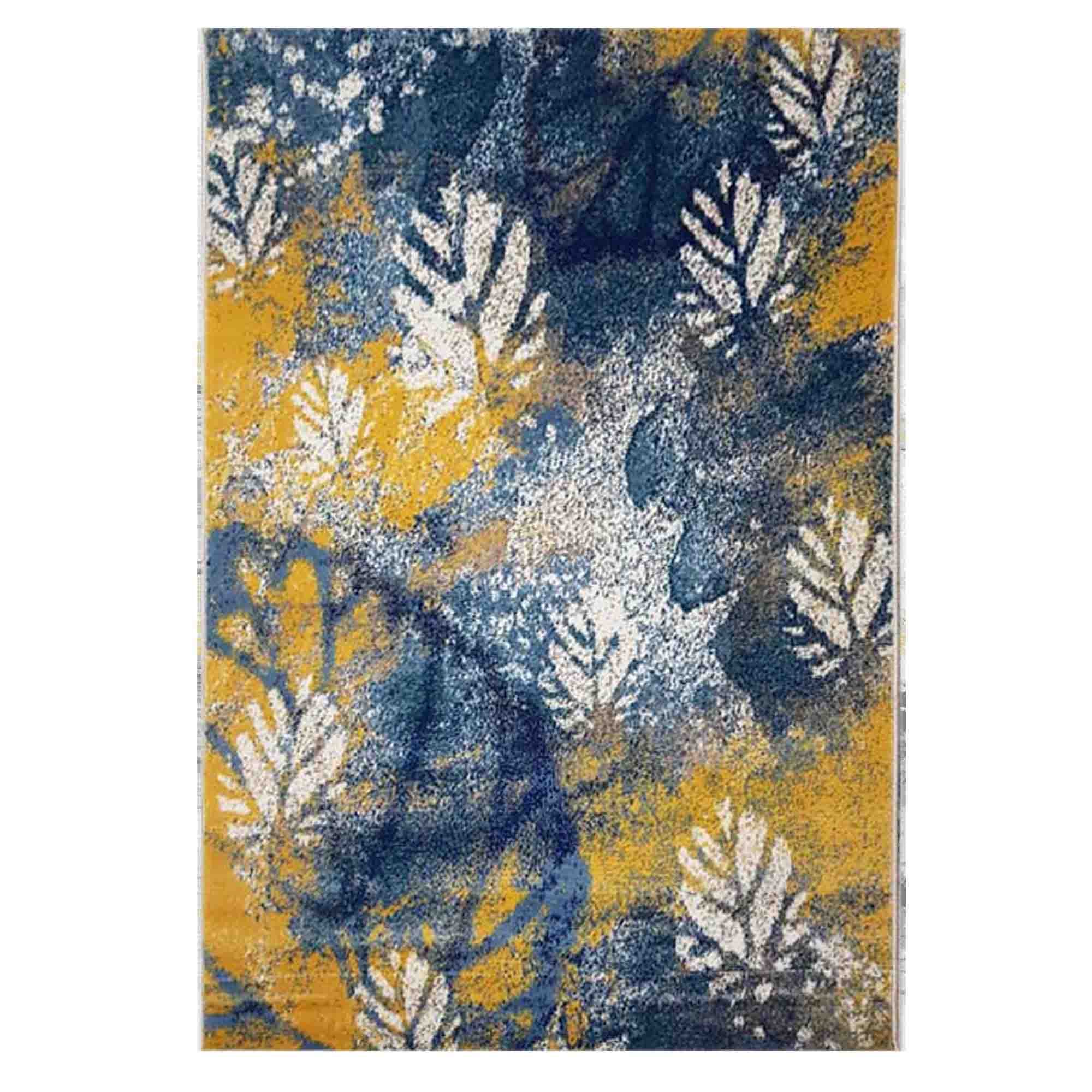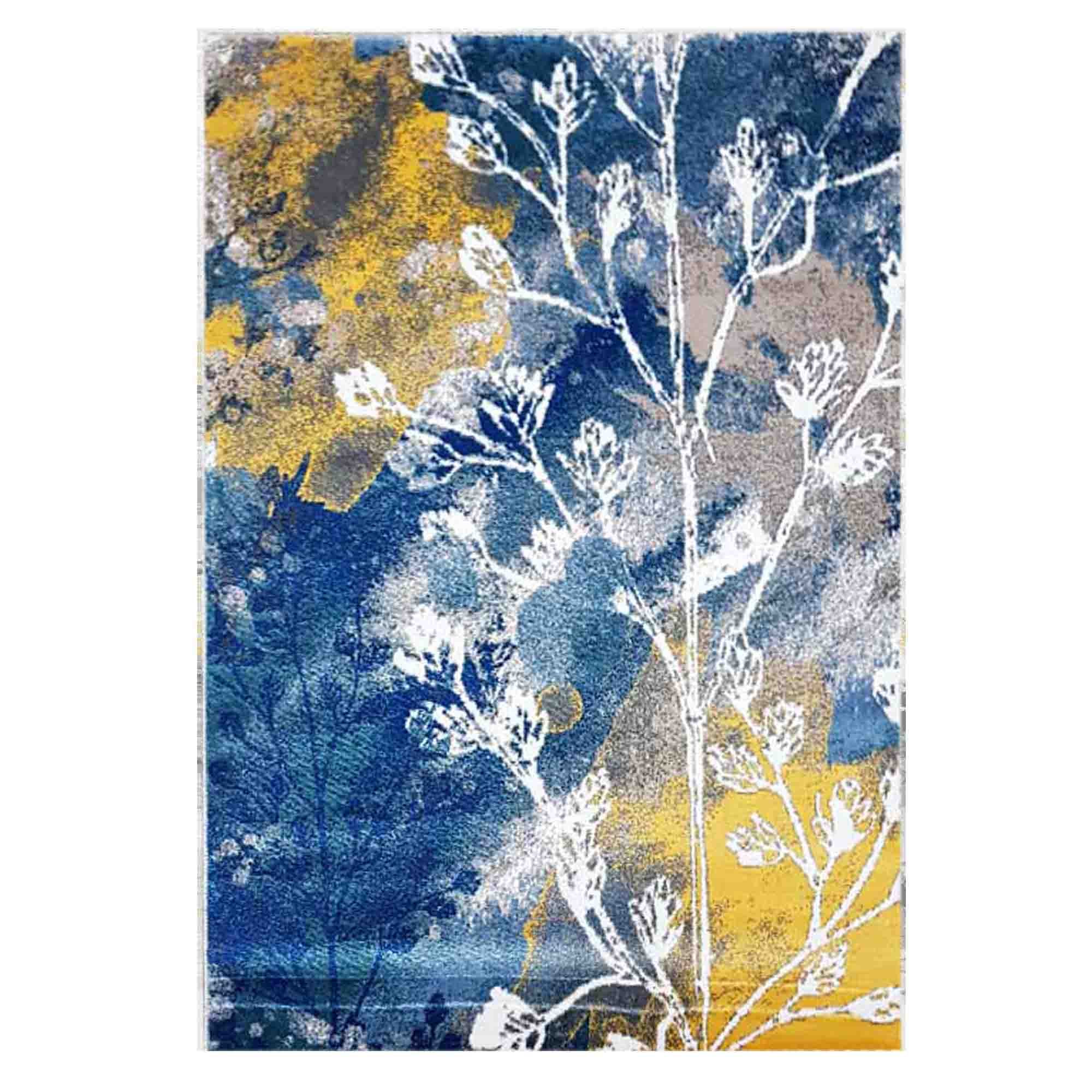 Thảm trải bàn ghế ZC có hoa văn thiên nhiên như cành hoa, cây lá, dệt chỉ cam hoặc trắng, phối trên nền chủ đạo xanh dương tạo nên các họa tiết độc đáo, khác biệt so với hoa văn thảm sofa thông thường.
