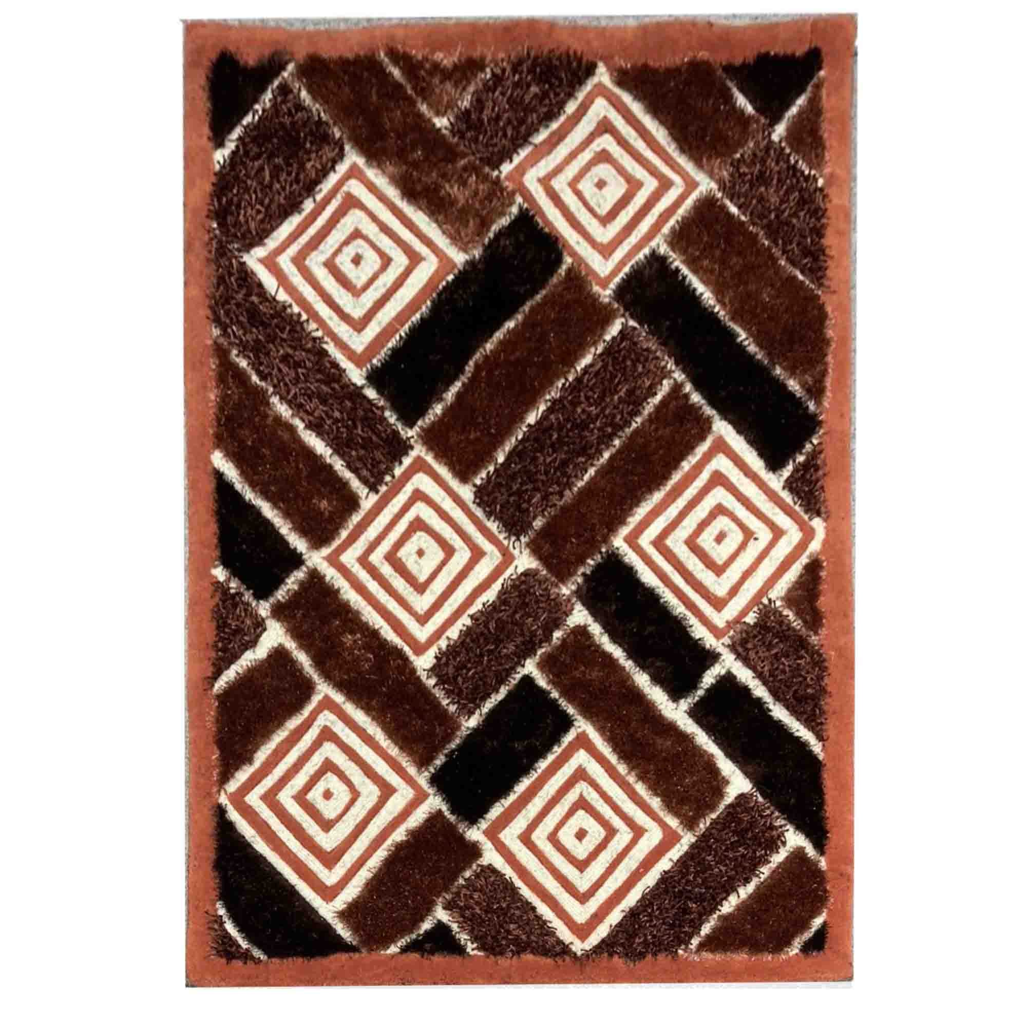 Chất liệu Polyester với kiểu lông nhung mềm mại phối hợp với các sợi gút tạo nên những hình khối lạ mắt, tạo nên điểm nhấn cho tấm thảm sofa trang trí phòng khách.