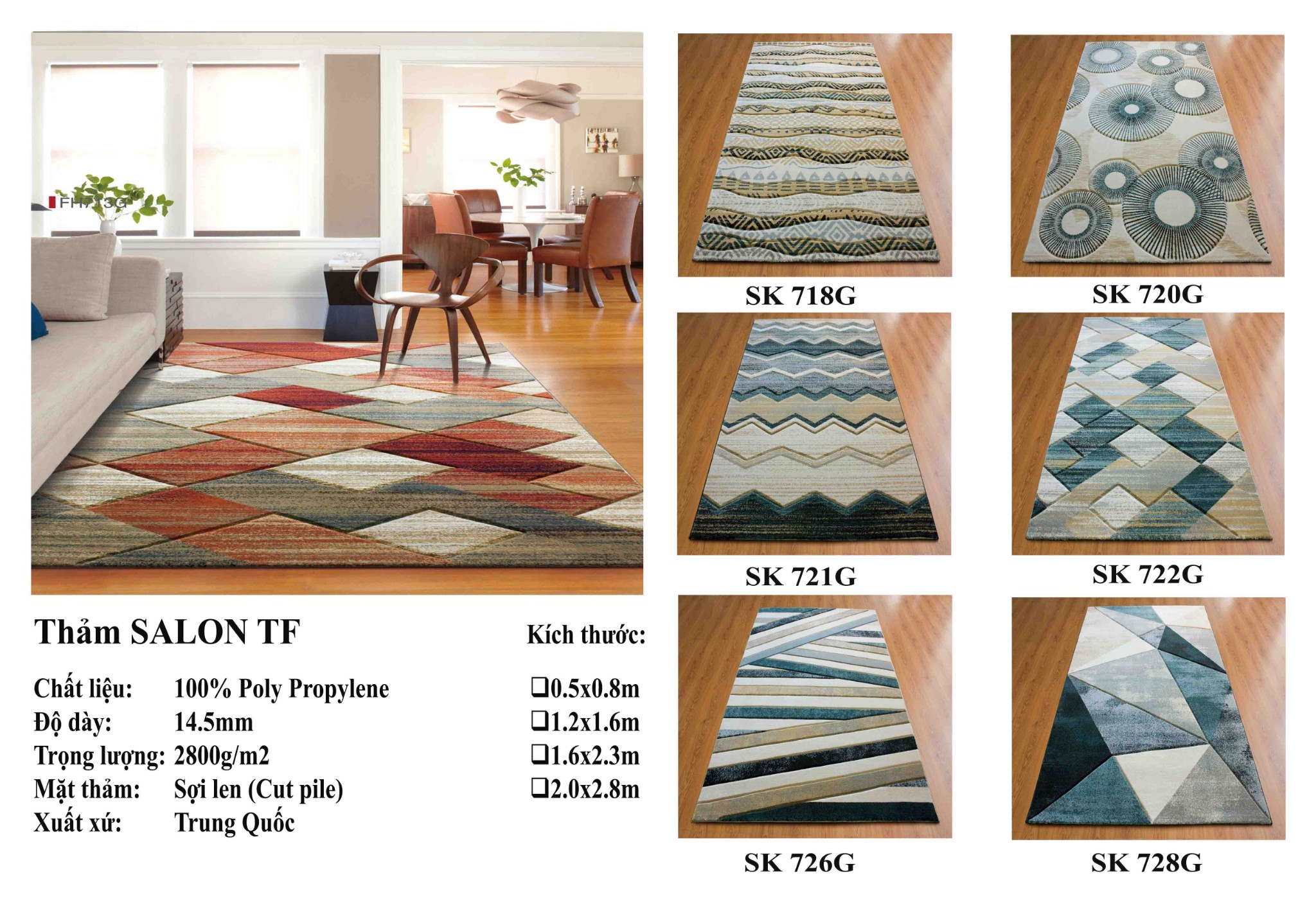 Thảm sofa THICK FUIL (TF) có nhiều mẫu họa tiết khác nhau để lựa chọn.