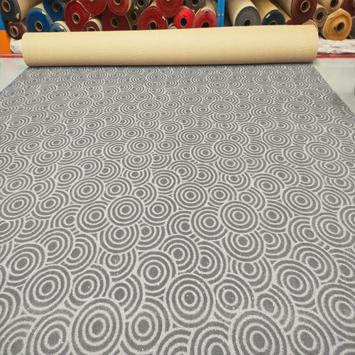 Thảm lót sàn Trident 405 xám là dòng thảm mặt len với tông xám chủ đạo cùng họa tiết xoắn ốc được thêu phân tầng tạo hiệu ứng nổi.