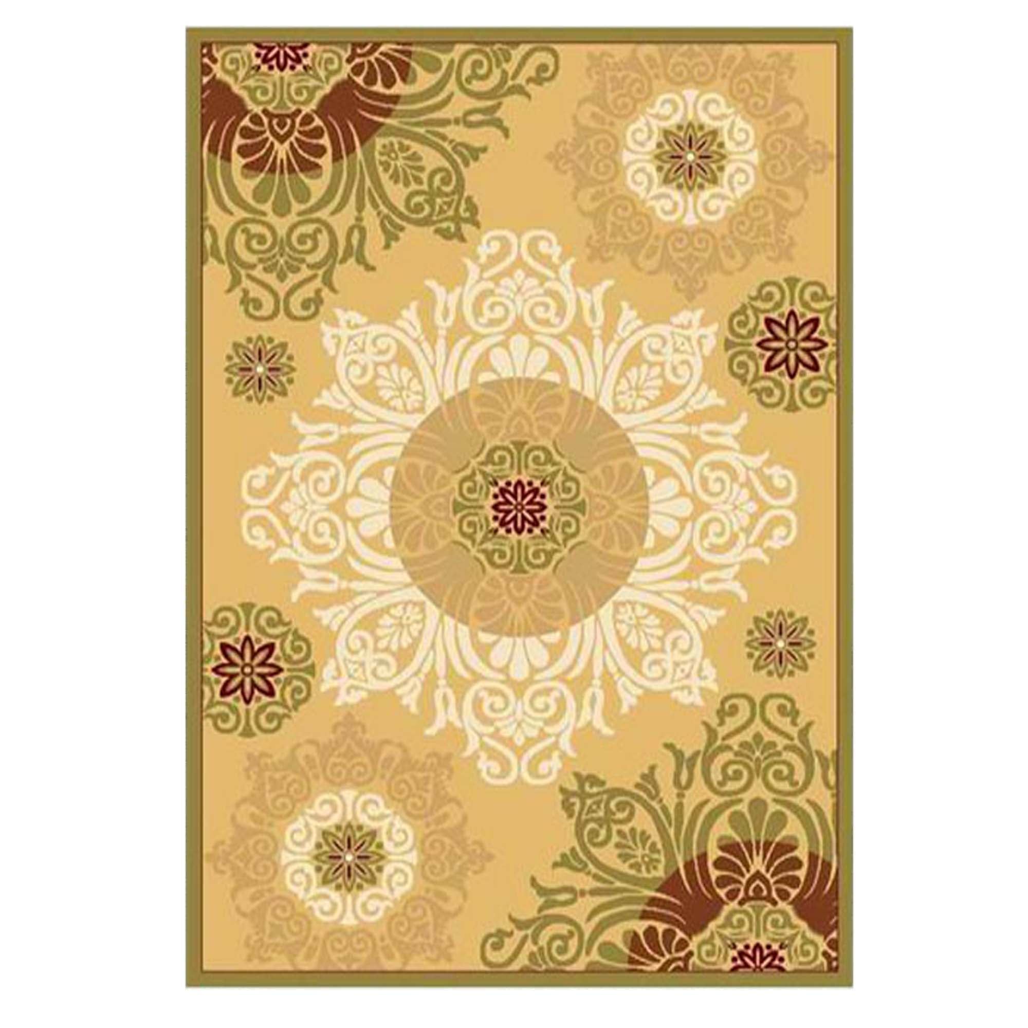 Thiết kế của thảm sofa X910 BE là dạng hình bông oval điểm ở giữa, tông thảm nền kem, phù hợp với nội thất cổ điển hoặc nội thất đồ gỗ.