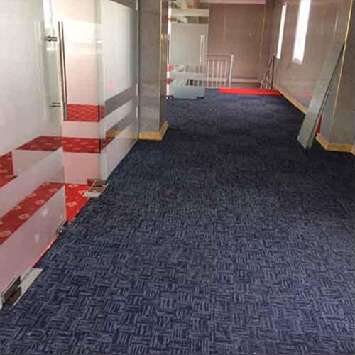 Thảm gạch Chorus 855 có tông màu xanh dương, hoa văn, phù hợp sử dụng để trải văn phòng, phòng hội nghị.